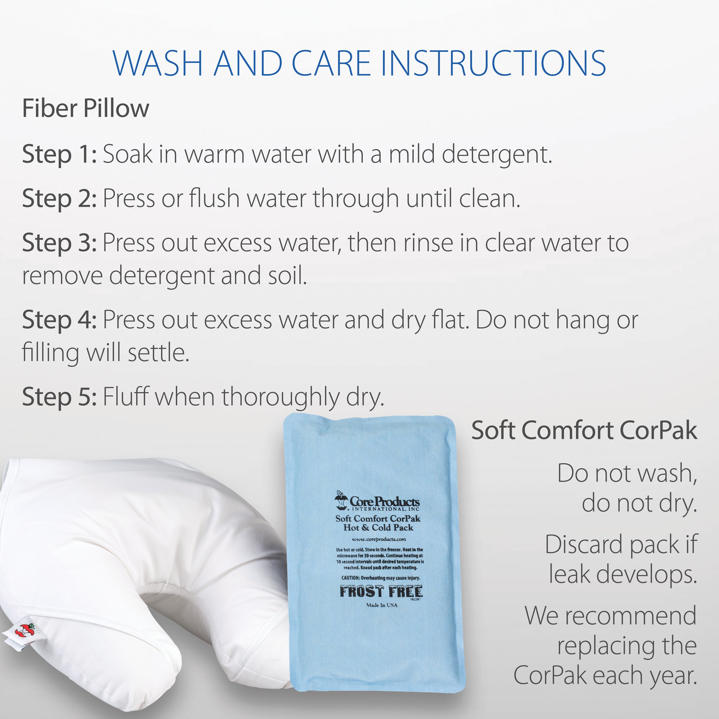 The pillow can be used with or without the Medium 6" x 10" Soft Comfort CorPak™ Hot or Cold Therapy pack. The pack's exterior is crafted from a proprietary blend of synthetic fibers and organic plant materials, offering superior performance. Additionally, the Soft Comfort CorPaks contain more nontoxic, biodegradable fill than traditional packs, ensuring longer retention of cold and heat.