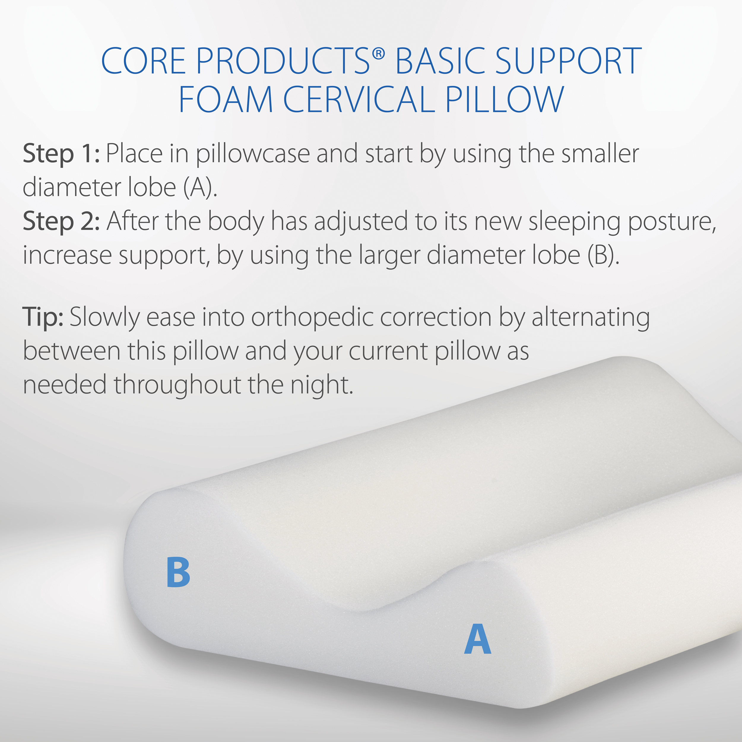 The Basic Support Pillow is designed to alleviate tension, headaches, and neck pain by aiding in the restoration of the natural neck curve. This economically priced pillow boasts full-size precision cut foam, ensuring a comfortable sleep experience. With two lobe sizes catered to different sleepers, it offers versatile support options for a restful night.