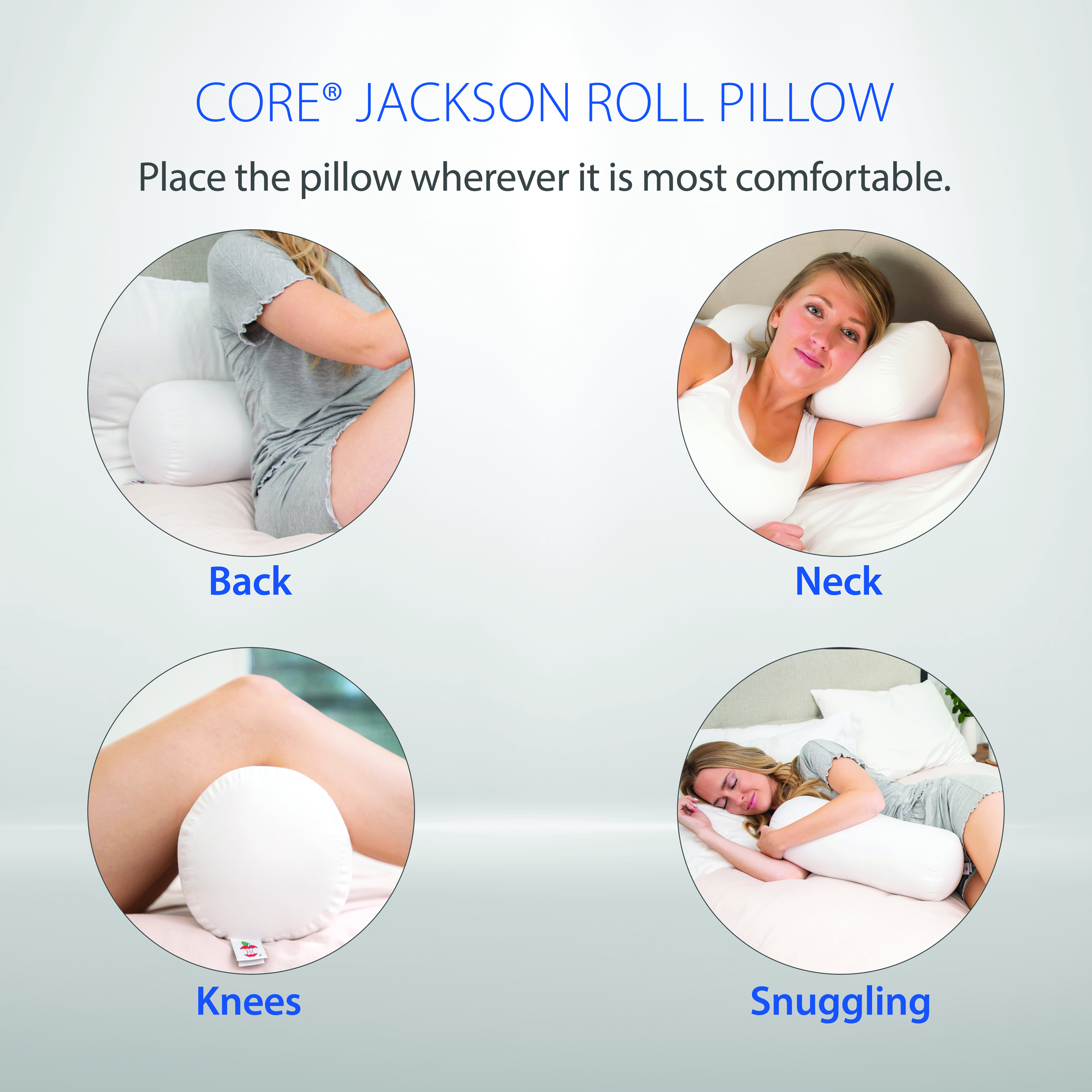 Indulge in unparalleled comfort with our highly adaptable Core® Jackson Roll, crafted to cater to your varied needs. Designed to offer both comfort and support, this versatile fiber support pillow is your ultimate solution for alleviating neck tension, aches, and stiffness. Whether utilized as a gentle neck support pillow, placed behind your back for lumbar support, or positioned under your knees for enhanced relaxation during rest, its ergonomic design ensures optimal comfort in every scenario. Perfect for both home use and travel, its durable construction, comprising the finest quality fiber and resilient fabric covering, guarantees years of unparalleled comfort and dependable service.