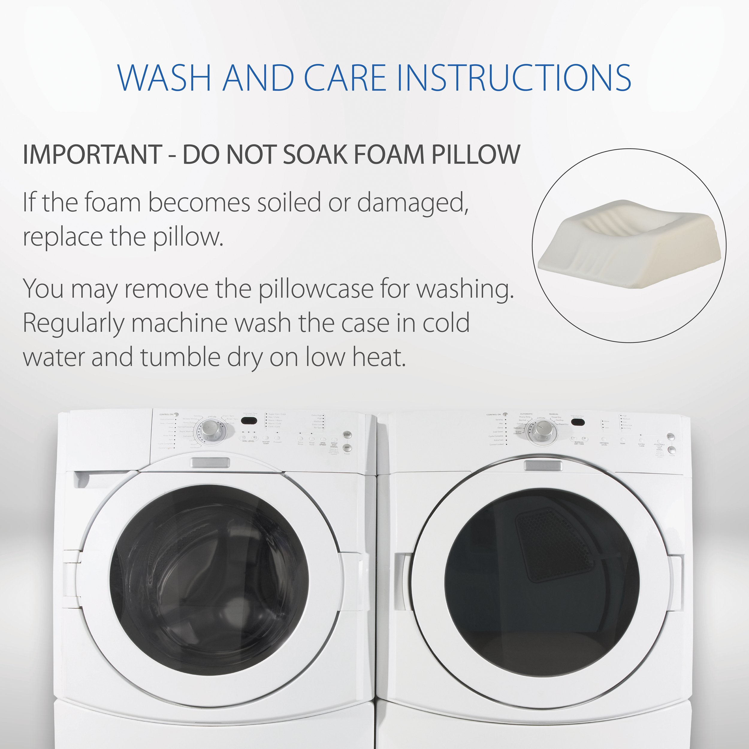 PRODUCT NOTICE: It is the nature of polyurethane foam to discolor when exposed to light and oxygen. The polyurethane foam used in this product may have a slight odor when first removed from packaging. The odor does not affect the performance of this product. Air out the pillow prior to use. Product Dimensions: